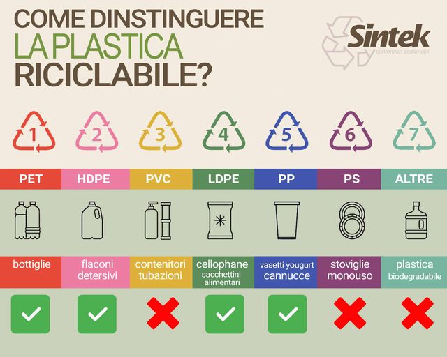 Una volta identificato il codice o la sigla potrete distinguere chiaramente il tipo di plastica con cui è fatto l’oggetto che stiamo per buttare.